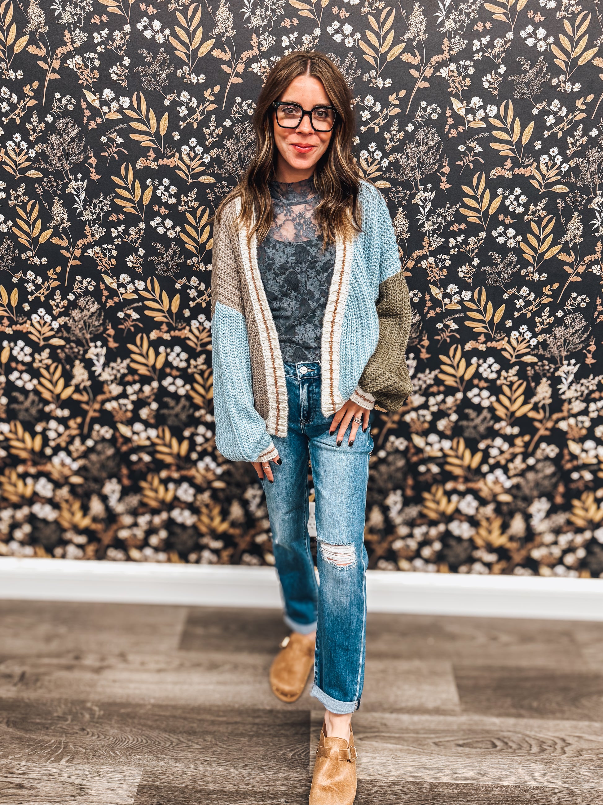 colorblock fall staple chunky knit cardigan